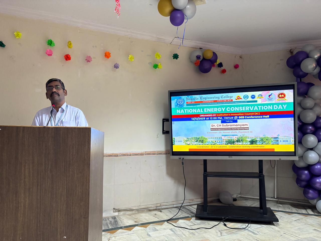On the occasion of National Energy Conservation Day, Bapatla Engineering College successfully organized an awareness seminar under the aegis of the Institute Innovation Council (IIC). The primary objective of the program was to instill a sense of responsibility among students and youth regarding energy conservation.